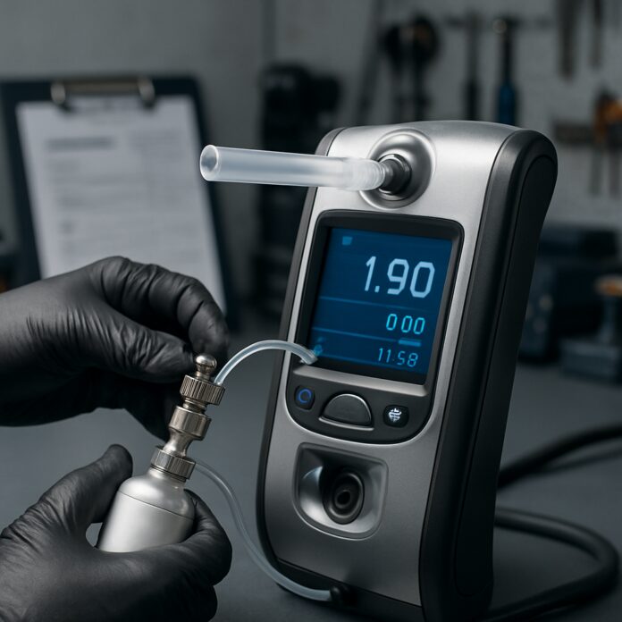 2. Nollställning – Enheten testas med ren, alkoholfri luft för att säkerställa korrekt nollpunkt