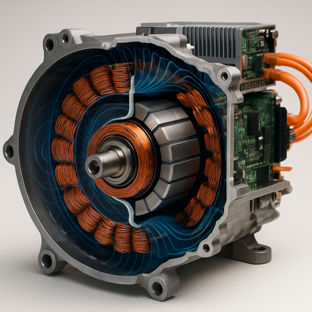 Moderna elbilsmotorer använder trefalslindningar som ger jämn kraftöverföring. Det här liknar principen i industriella elektromotorer men optimerad för fordonsdrift. Temperaturhantering är kritisk – statorn kyls vanligtvis med vätska för att bibehålla optimal prestanda.