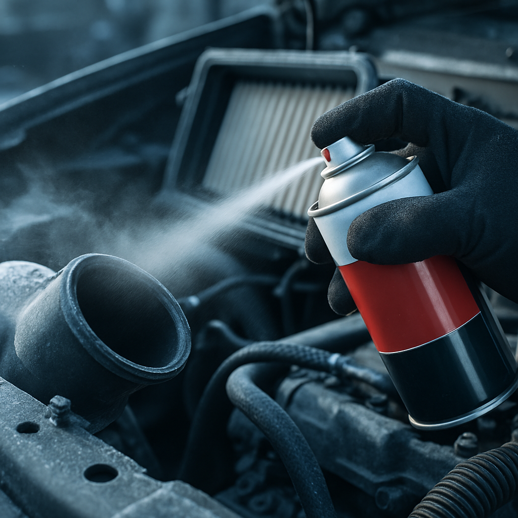 Att använda startvätska på motorer med massluftmätare (MAF) kräver extra försiktighet. Spraya aldrig direkt på sensorn eftersom det kan lämna oljerester som påverkar mätningen och orsakar felaktiga bränsleblandningar.