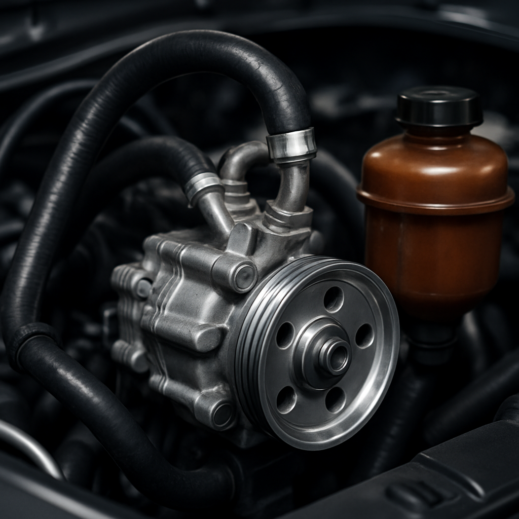 Styrservopumpen driver hydraulsystemet som gör styrningen lätt. När pumpen börjar svikta hörs karakteristiska gnisslande eller gnällande ljud, särskilt vid fullt rattutslag. Dessa ljud kommer från slitna lager eller en pump som arbetar utan tillräckligt med olja.