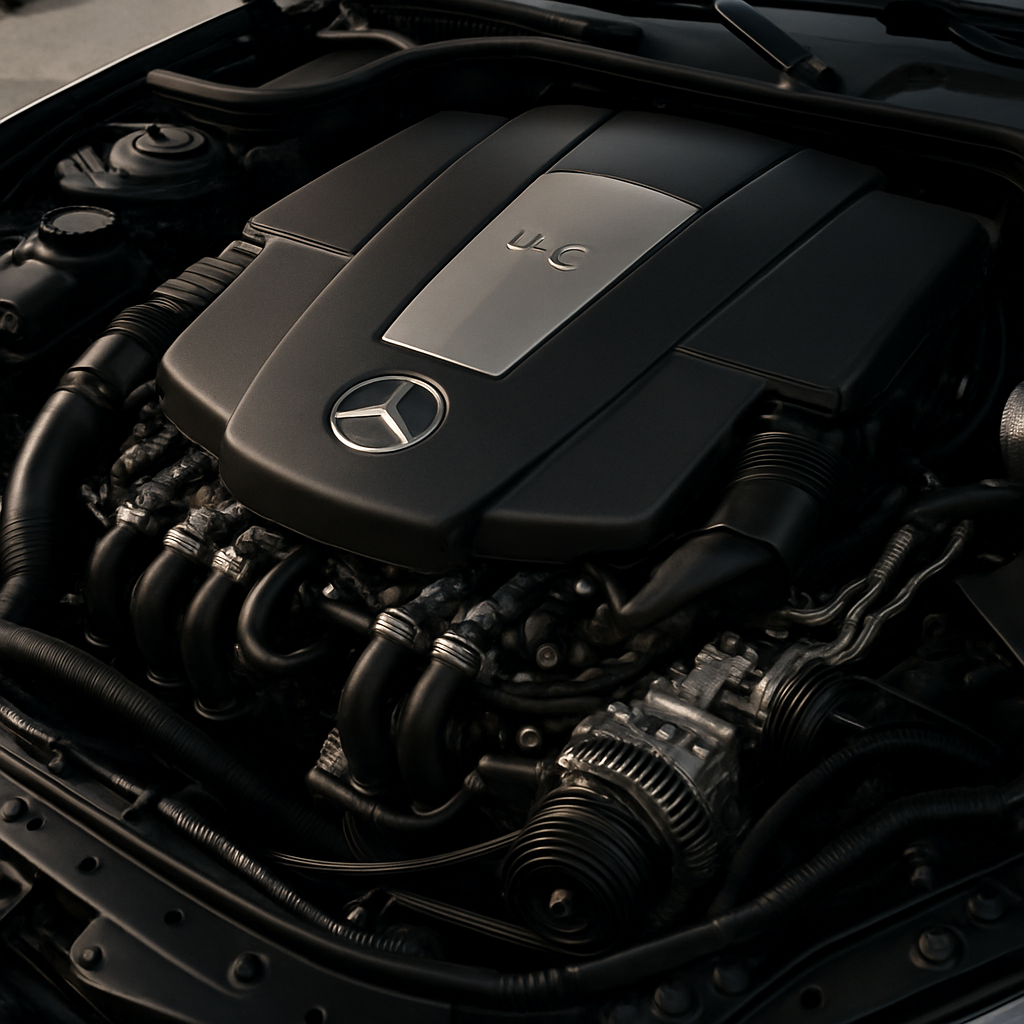 Mercedes rekommenderar byte var 60 000 mil eller vart sjätte år på V6-motorerna. Våra mekaniker råder dock till byte vid 50 000 mil som säkerhetsmarginal. Bristande rembyte kan orsaka katastrofala motorskador värt tiotusentals kronor.