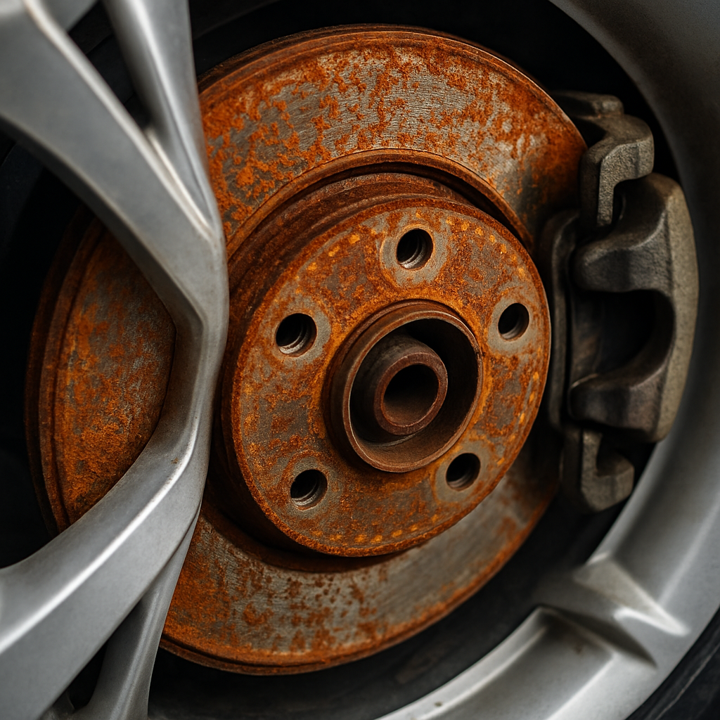 - Visuell inspektion: Synlig rost på bromsskivornas yta, särskilt djupa gropar eller fläckar som inte försvinner efter körning.