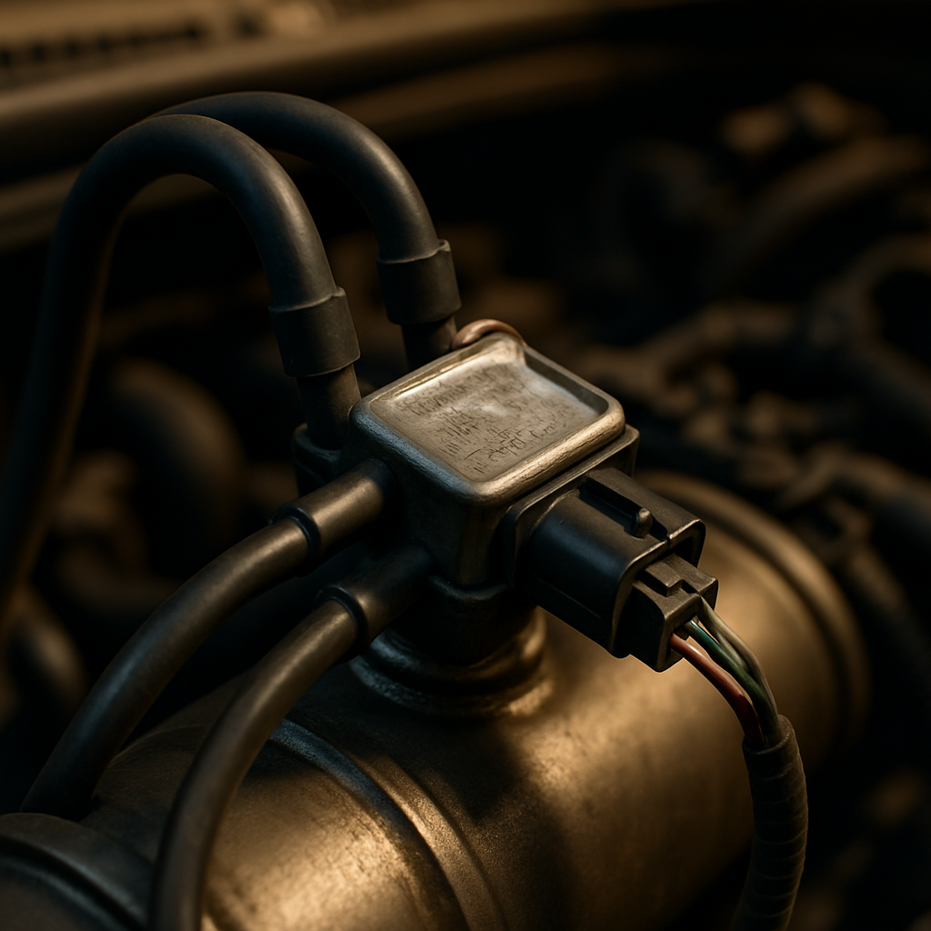 Nästa steg är att inspektera slanganslutningarna till tryckgivaren. Dessa gummislangar kan bli spröda, sprucka eller lossna helt. En lös eller läckande slang ger samma symptom som en trasig sensor. Kontrollera också att slangarna inte är tilltäppta av sot eller kondensvatten.
